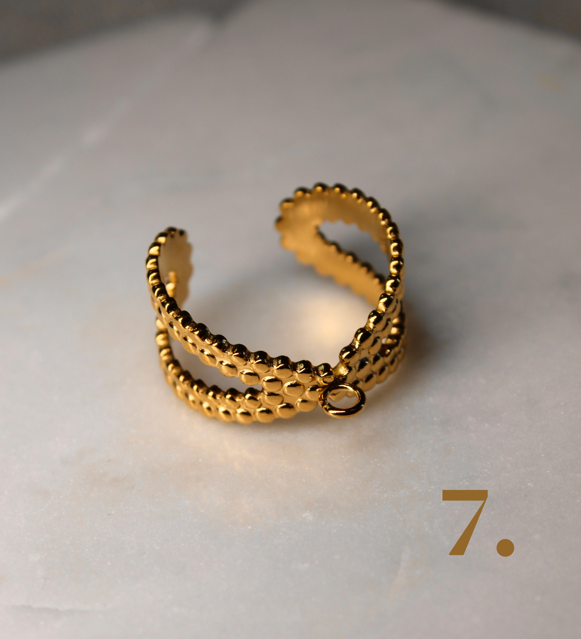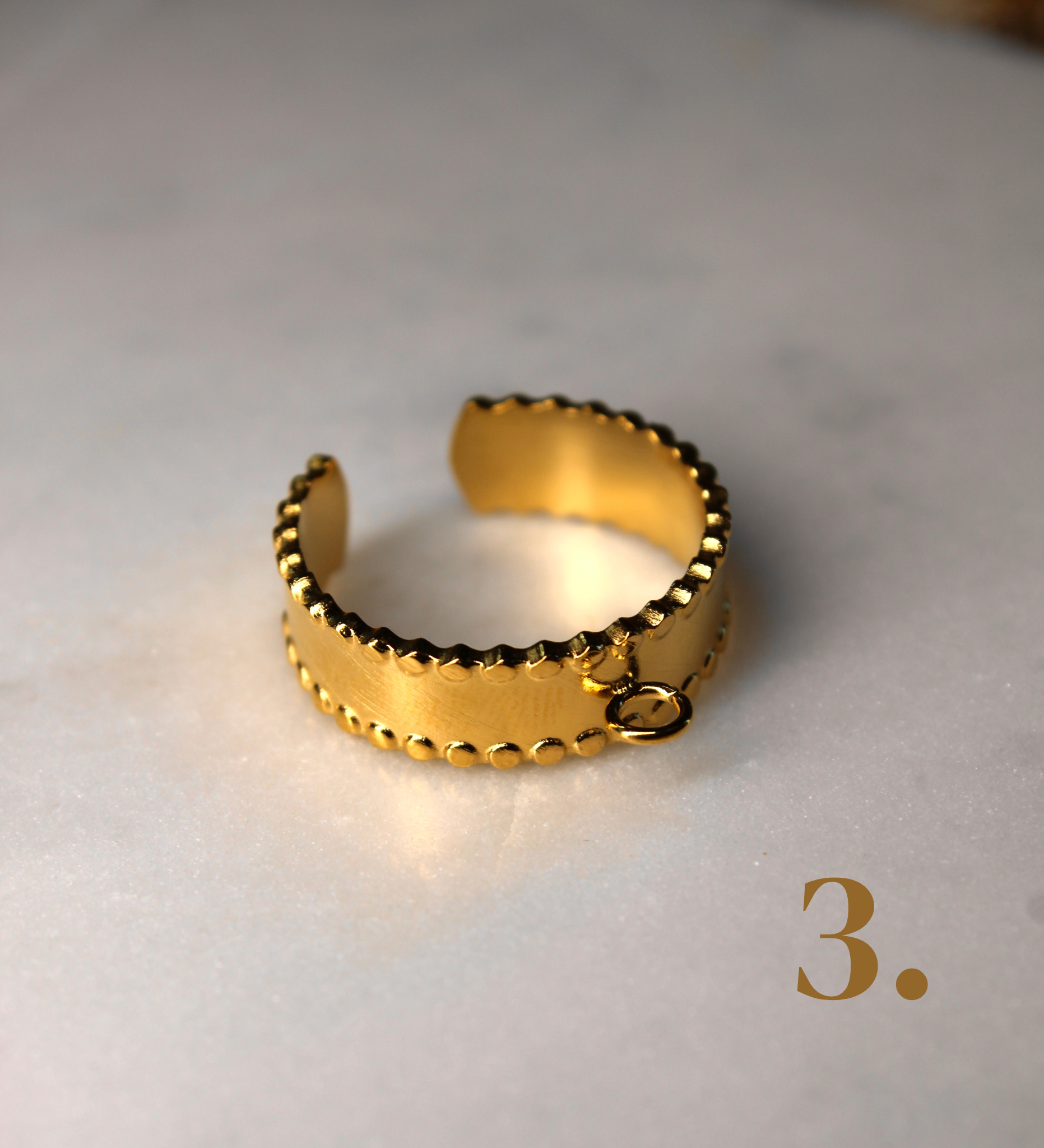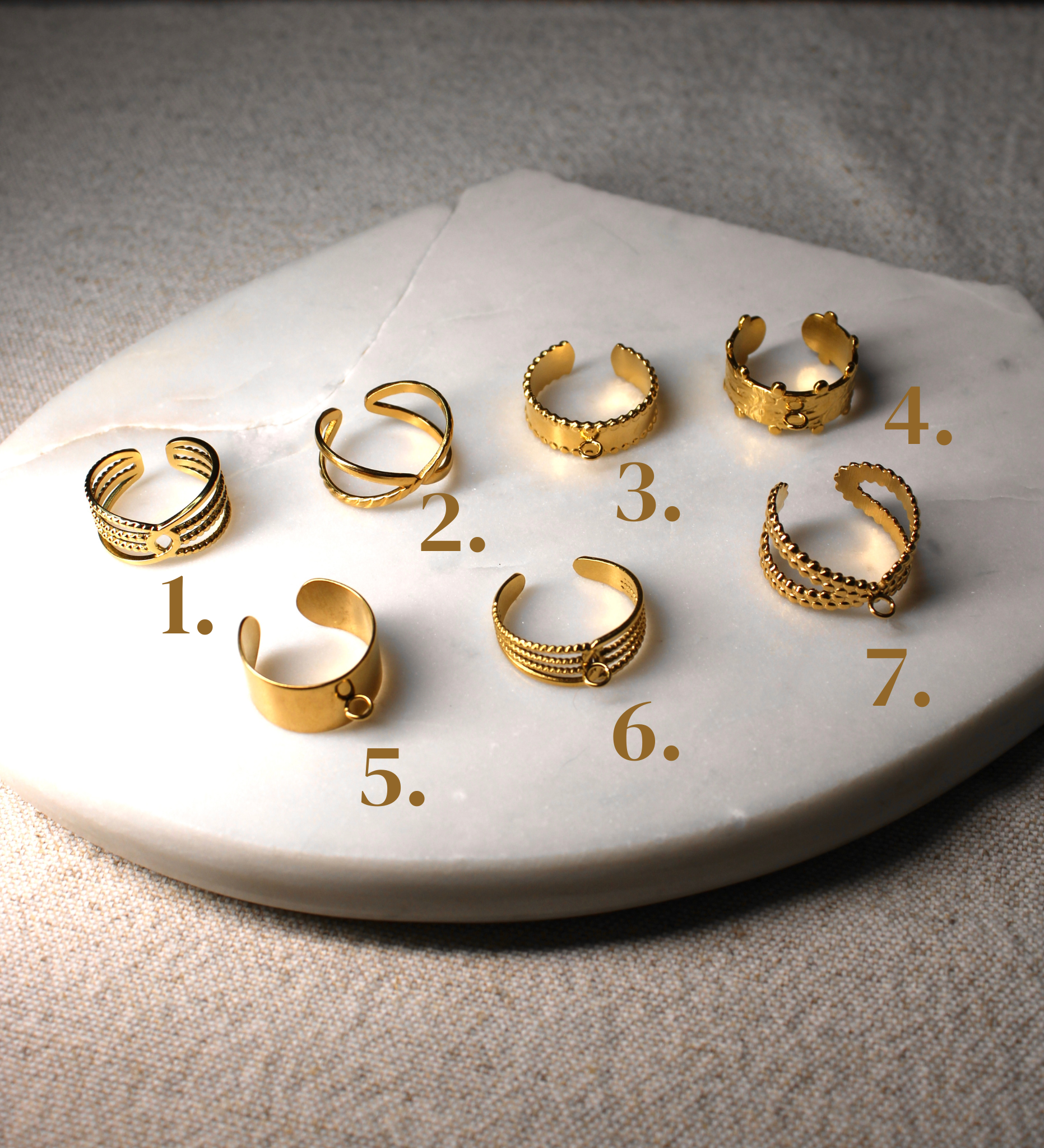 Les bagues personnalisables, des jolis supports dorés avec la breloque de ton choix ! De quoi faire de beaux assemblages qui te ressemblent ✨