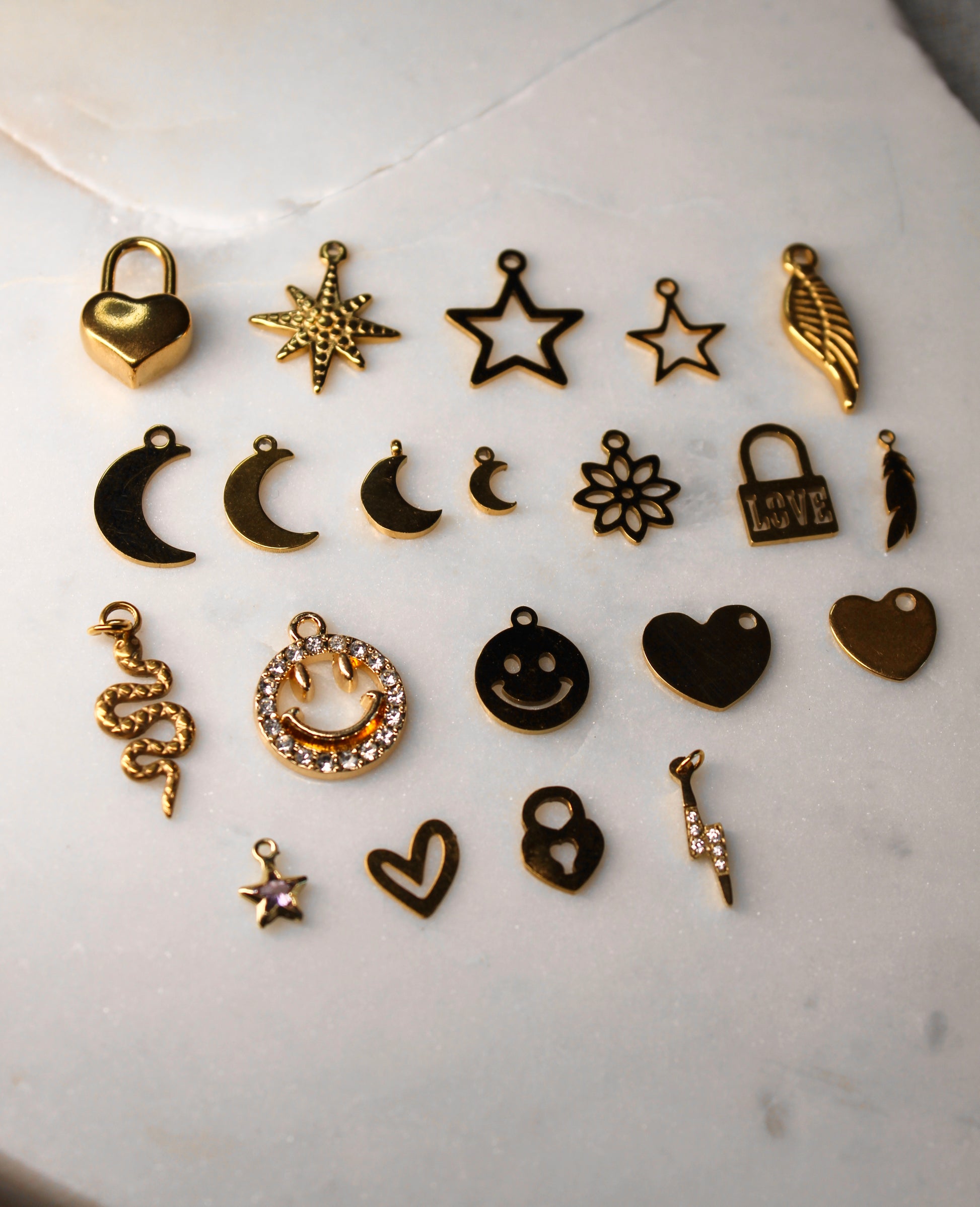 Étape numéro 2 : Choisis une breloque ! Tu as le choix entre une initiale ou plusieurs modèles de lune, des coeurs, des étoiles et plein d'autres encore..🌙