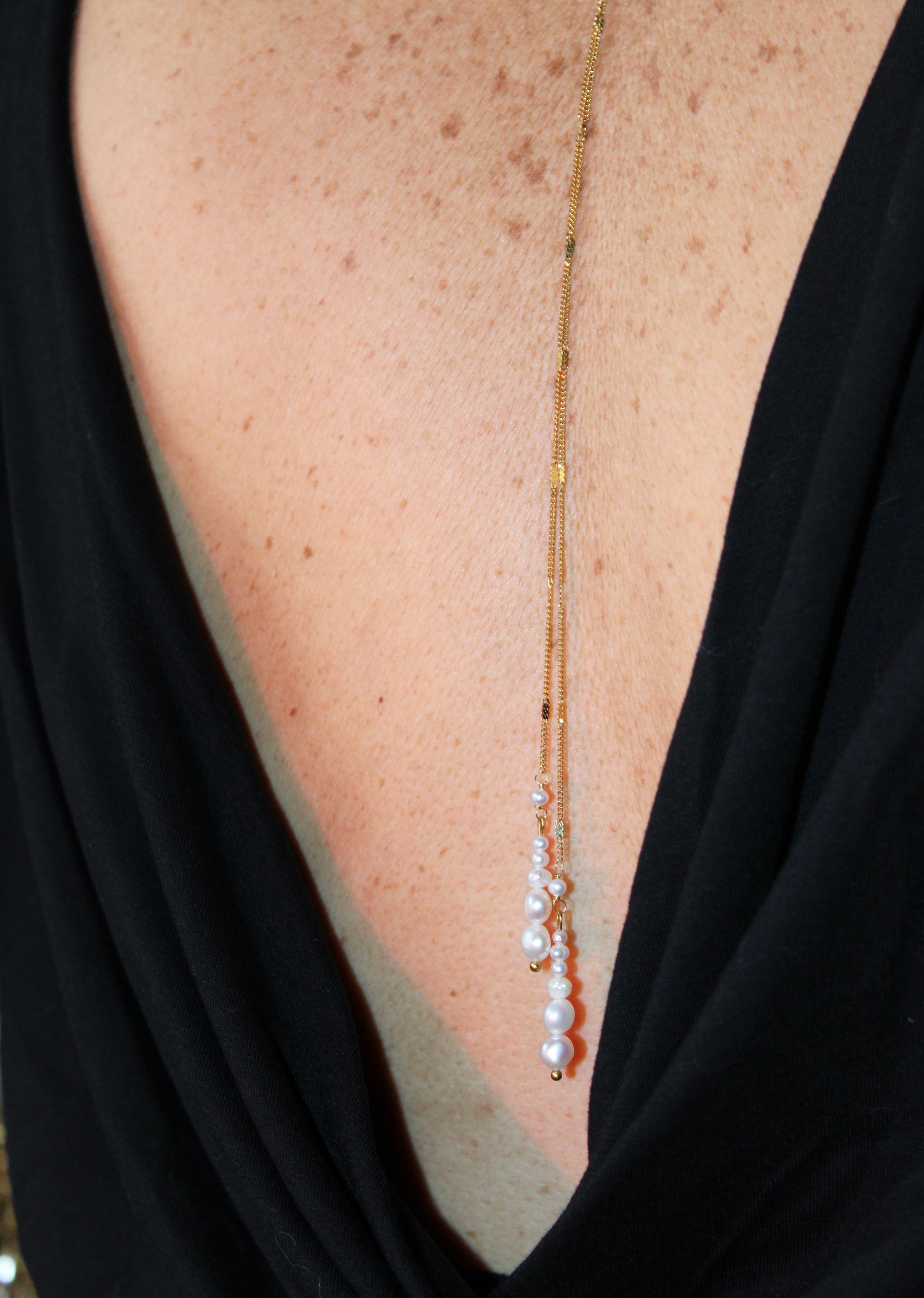 Une véritable cascade de perles de culture, avec des maillons plats qui attrapent la lumière pour te faire briller de mille feux ✨
