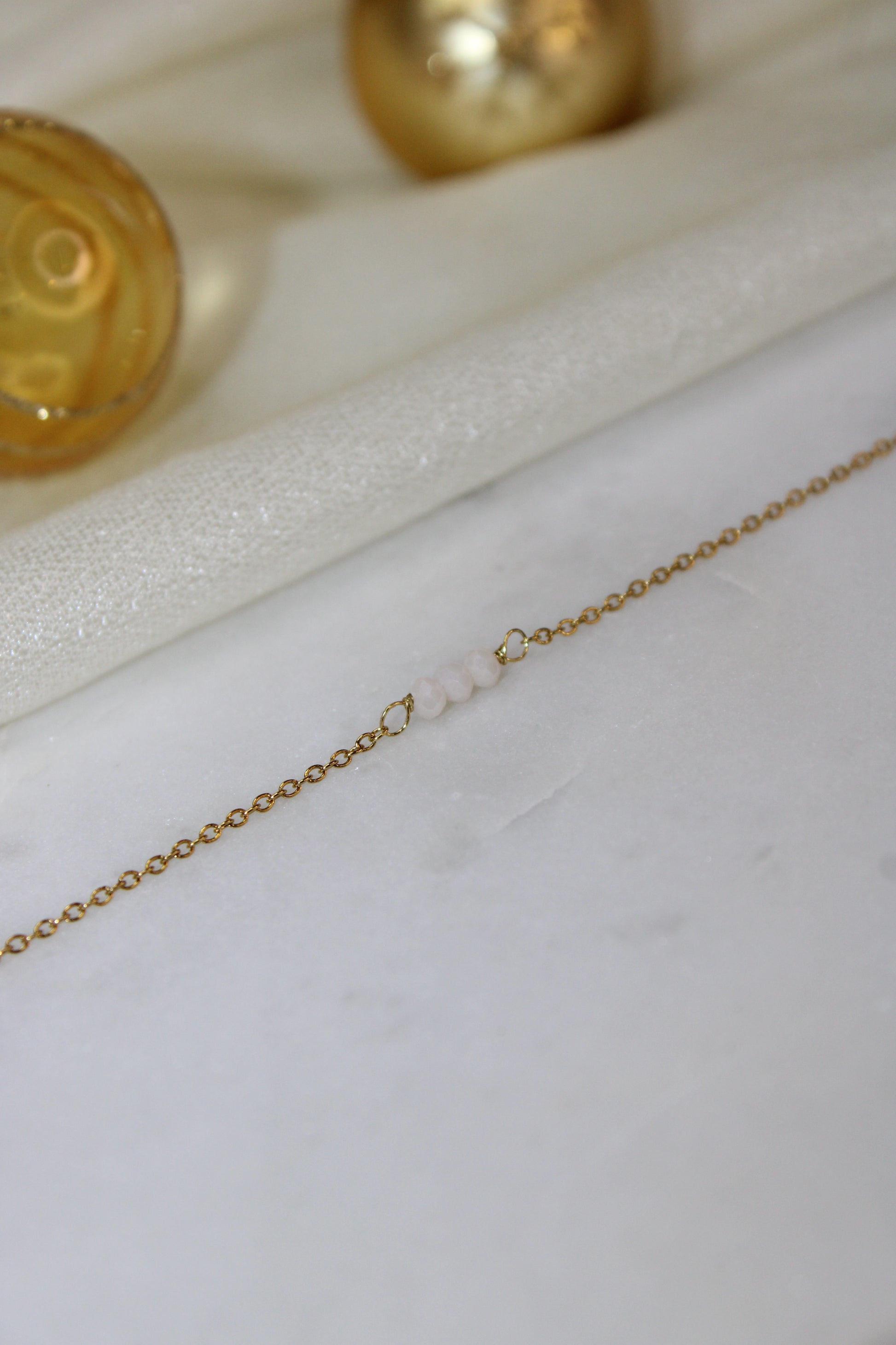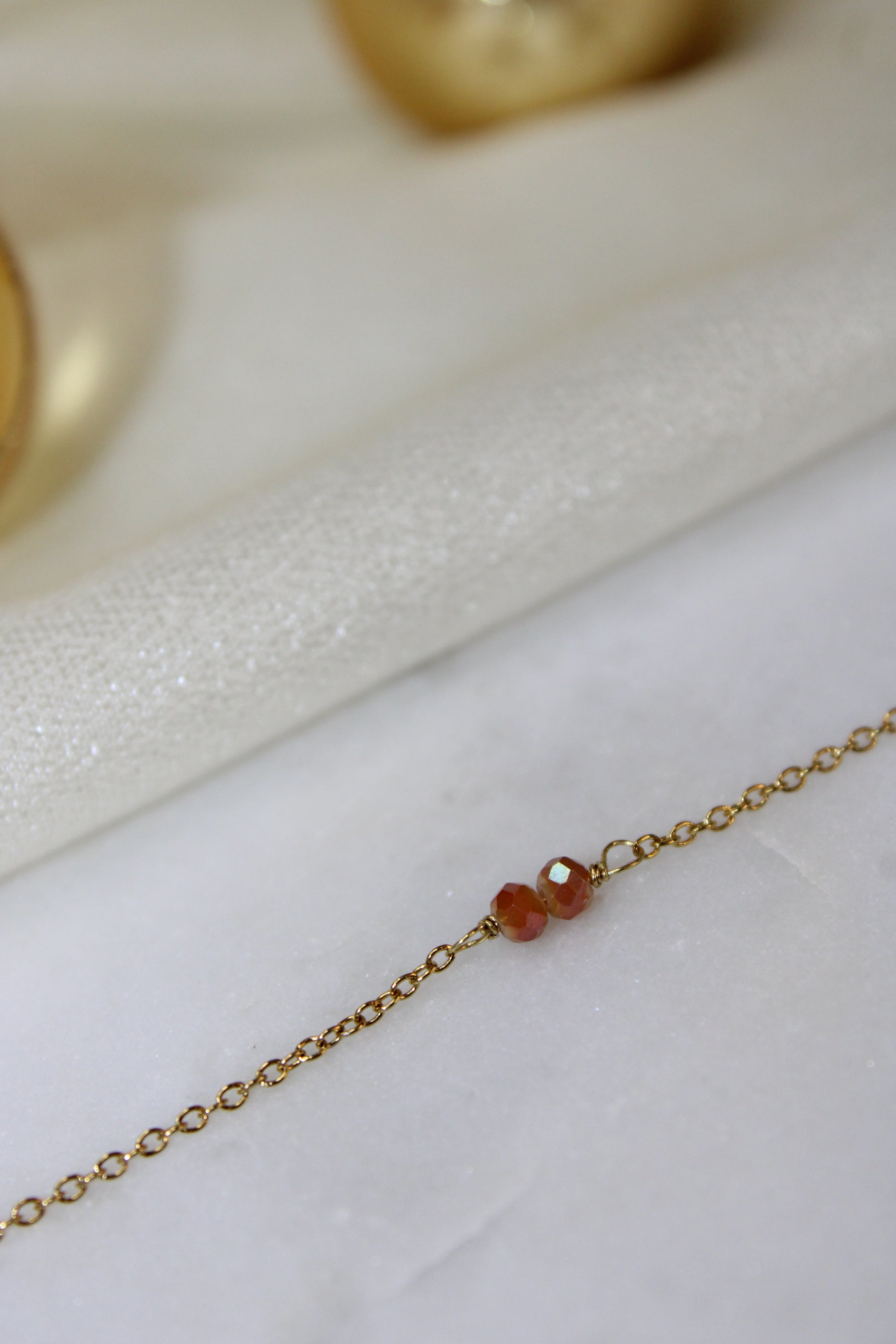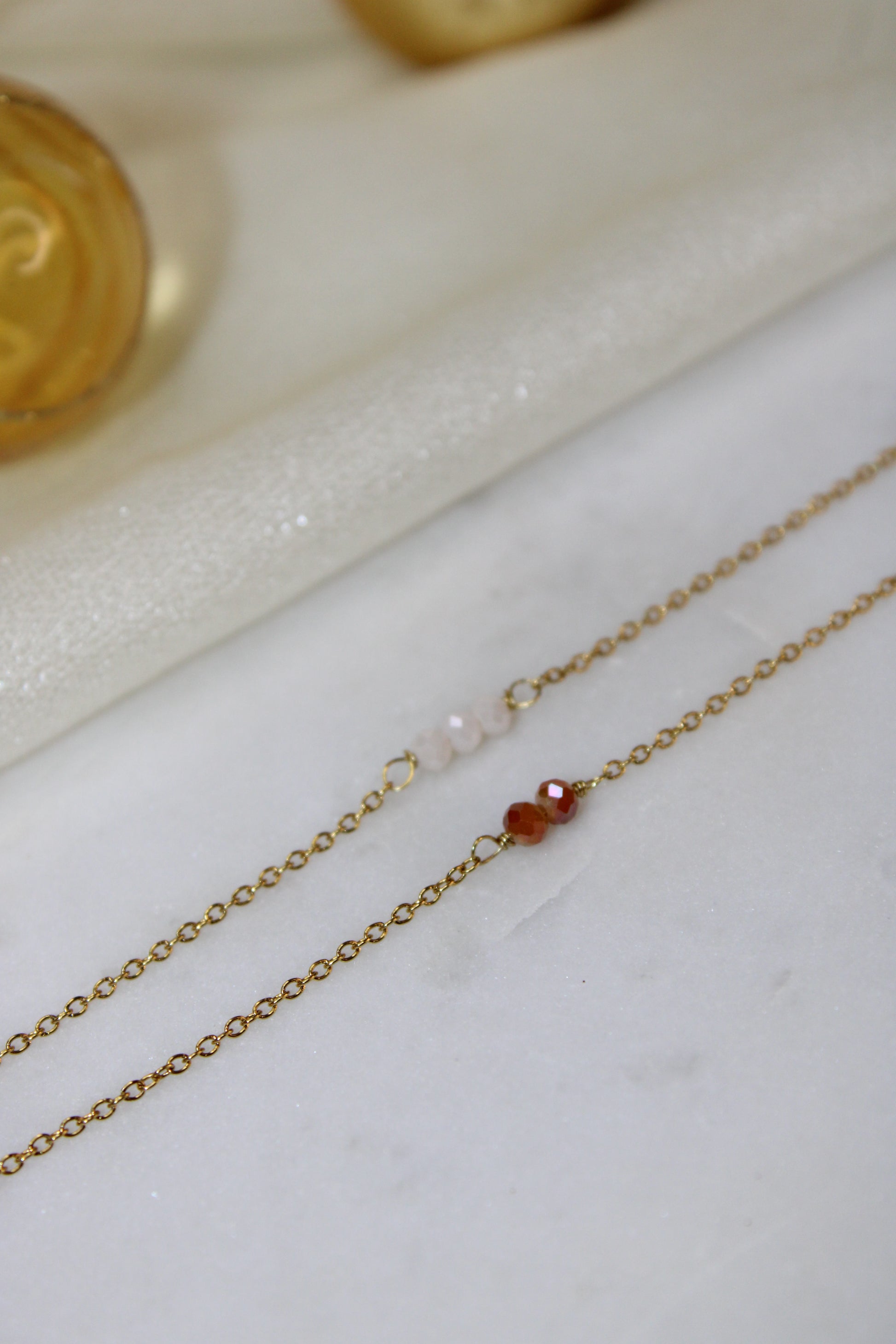 Des petites perles en verre associées à de la chaine dorée.. une touche de couleur, une touche de brillance !