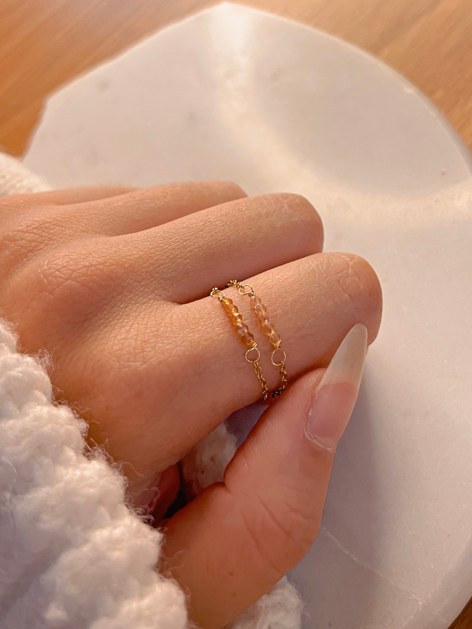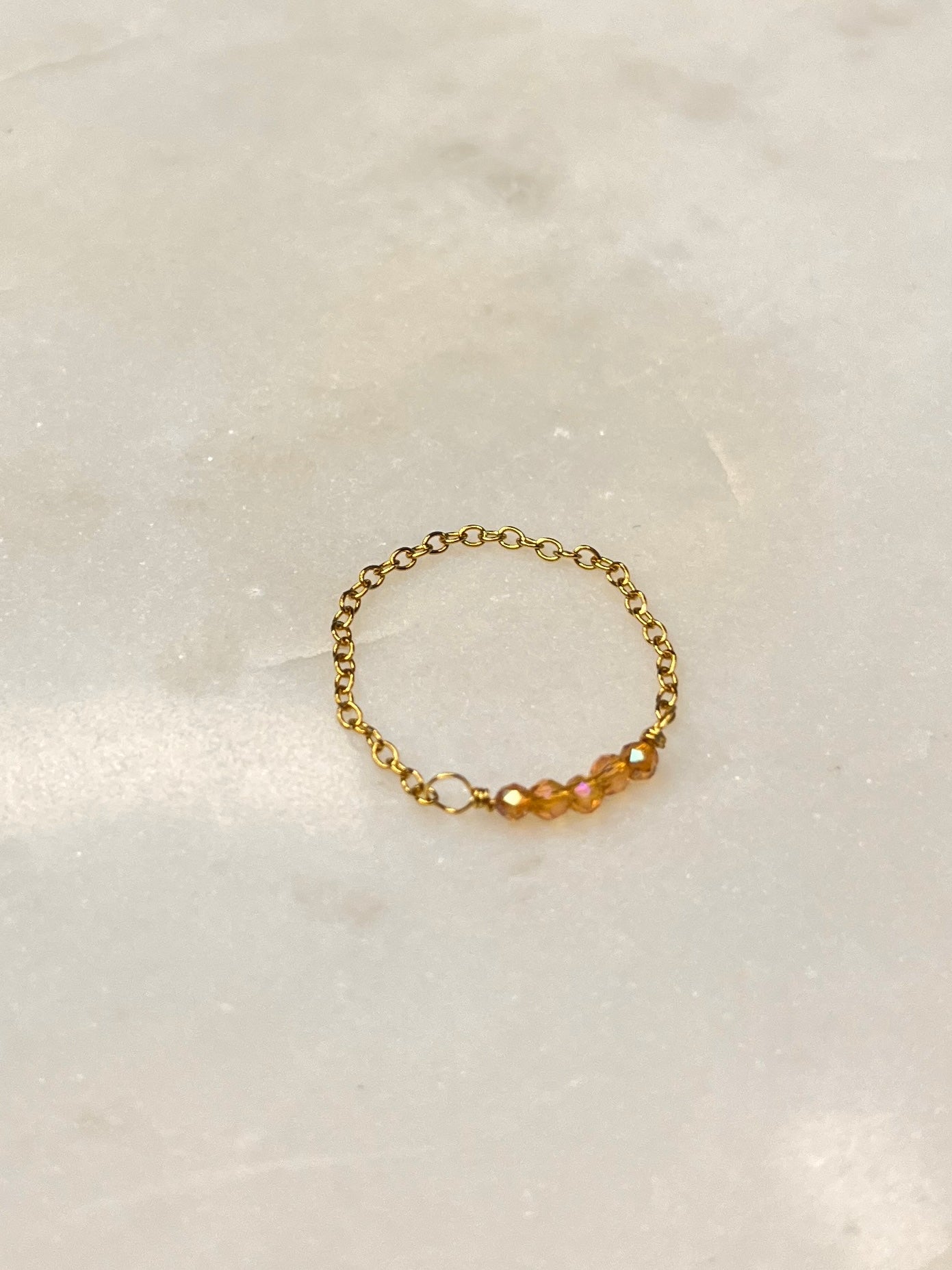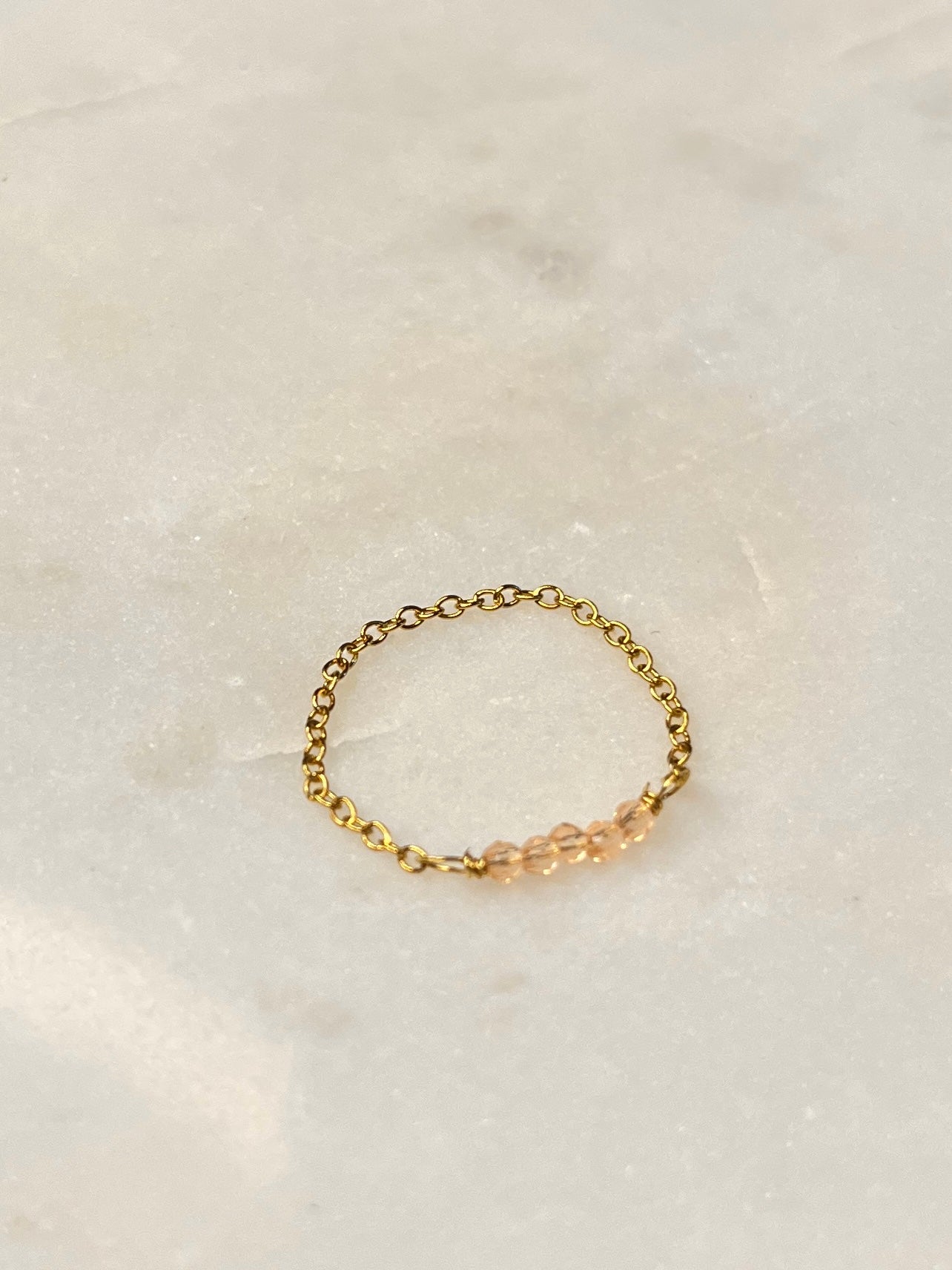 Ces petites perles aux reflets dorés brillent comme un lever de soleil 🌅… à toi les good vibes dès le matin avec la bague Delly !